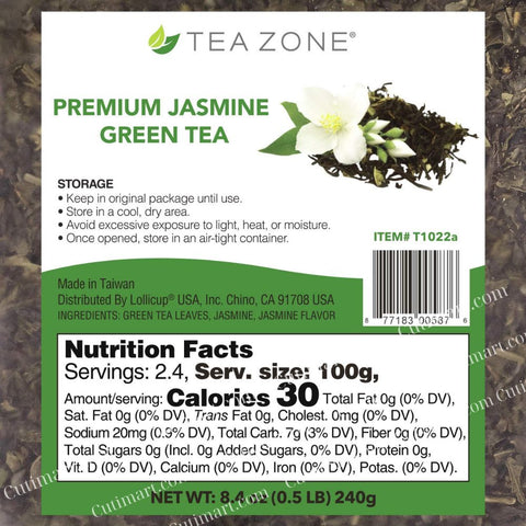 Tea Zone Premium Jasmine Green Tea contains loose tea leaves of the camellia saneness. Since its origin in 10th century BC China, tea has become the most widely consumed beverage in the world. Served in various forms and mixes, spanning across different cultures and countries, tea is also known to be beneficial to health and longevity. Packaged and securely sealed in every bag is the bold aroma of amazingly roasted Tea Zone tea leaves harvested from natural tea leaf fields. Tea Zone tea leaves are the best choice in bringing out bold flavors, whether served hot, cold, or mixed with fruit or milk.